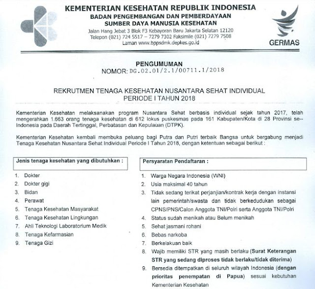 Pendaftaran Program Nusantara Sehat Periode I Tahun 2018 ...