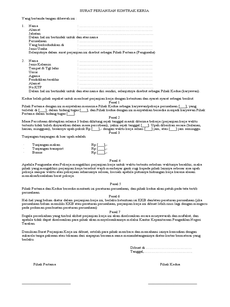 Surat Perjanjian Kontrak Kerja